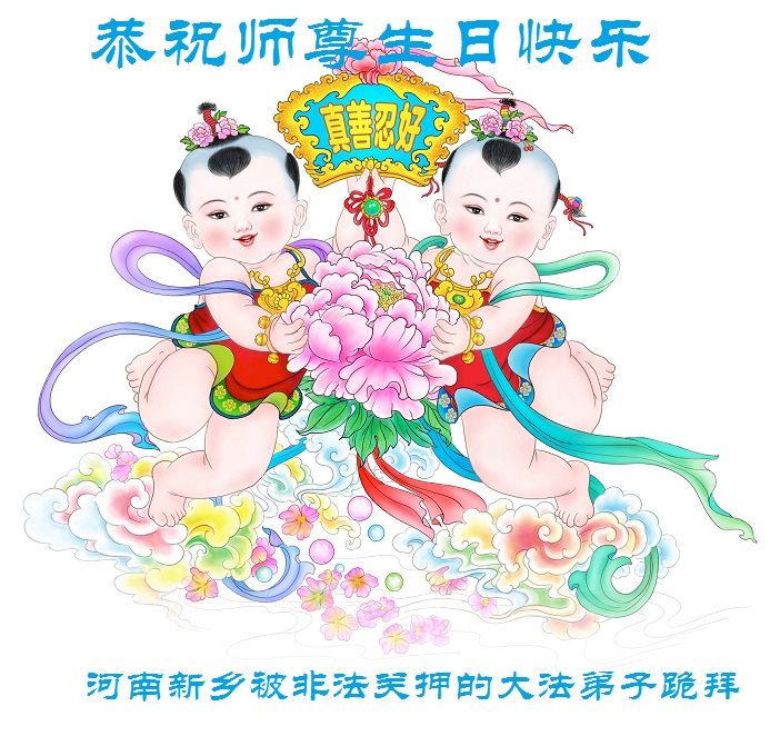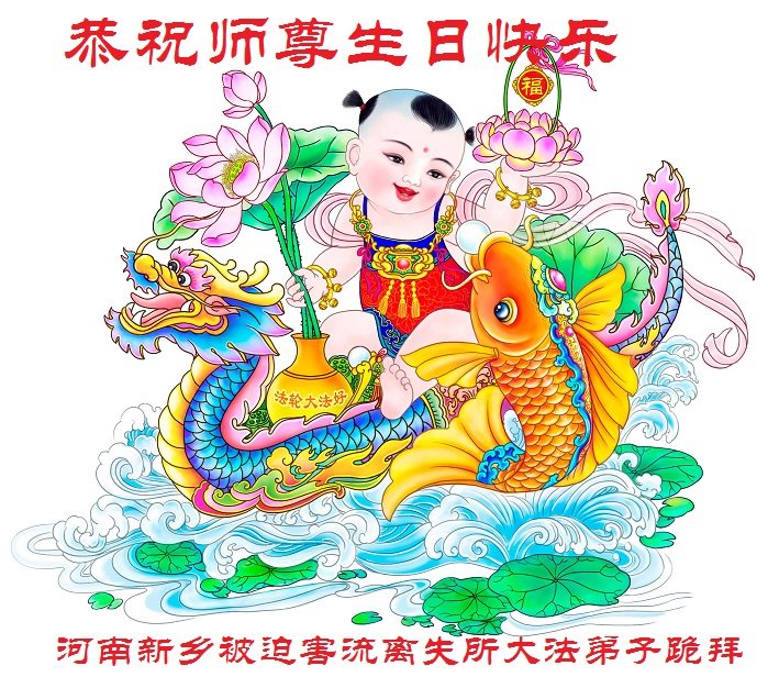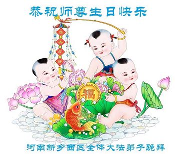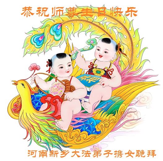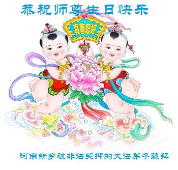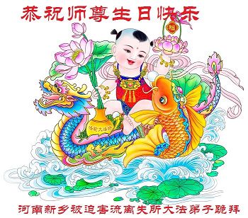 河南洛陽大法弟子恭祝慈悲偉大的師父生日快樂!