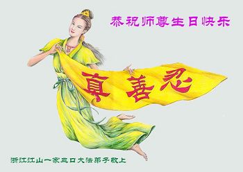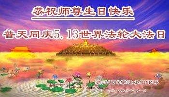 浙江大法弟子恭祝師尊生日快樂!普天同慶世界法輪大法日!感恩師尊慈悲苦度!