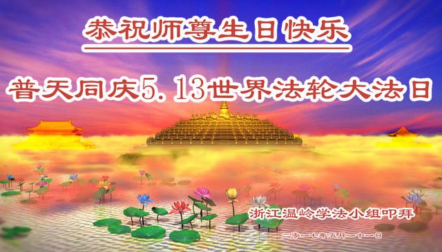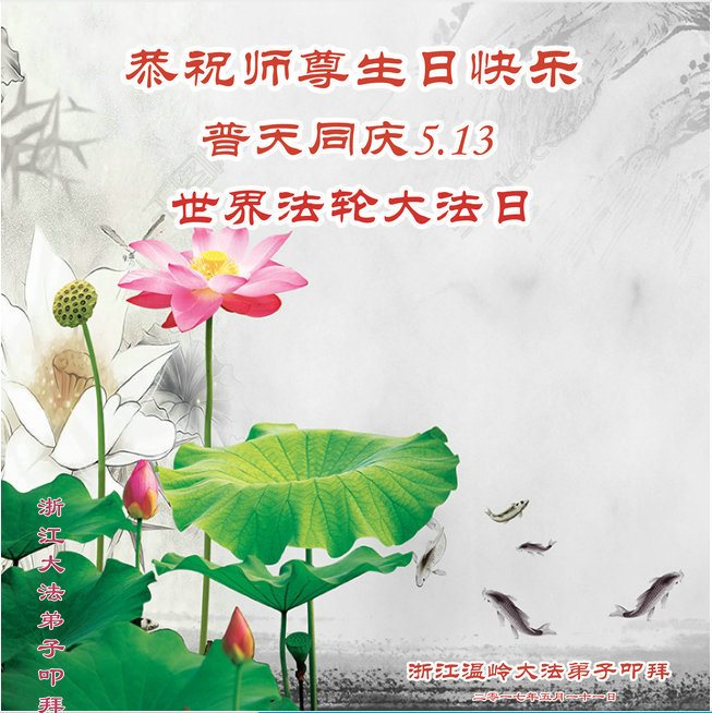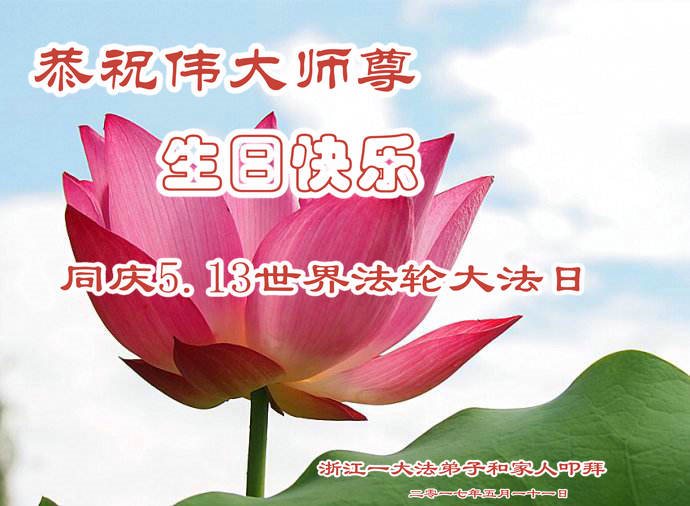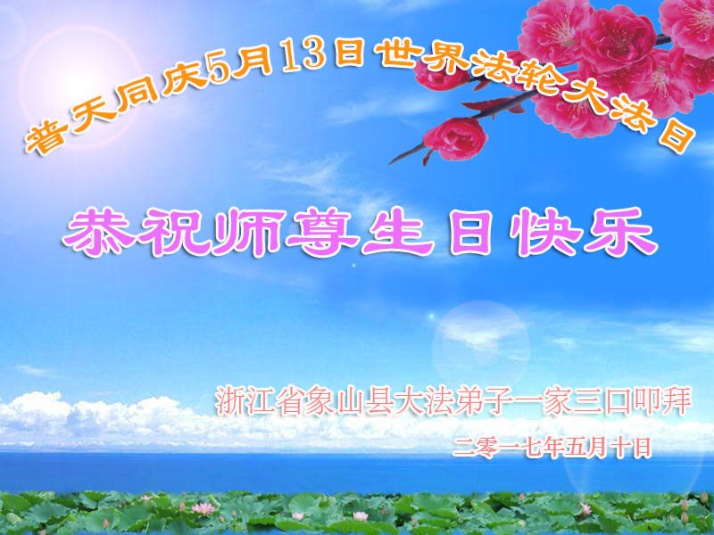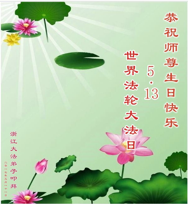 浙江一大法弟子衷心祝願恩師生日快樂!喜慶二零一七年五月十三日世界法輪大法日!