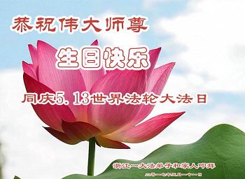 普天同慶世界法輪大法日暨師尊華誕,「真、善、忍」的光芒普照寰宇,「法輪大法好」的真相深入人心,無數弟子在壓力和困難面前不改初衷,因為大法的美好和神聖震撼著我們的內心,我們將永遠追隨師尊和大法,真修向善,期盼世人別受中共的謊言欺騙。弟子感恩師尊慈悲苦度,在剩下的時間裏,決心努力精進,儘量做好。恭祝師尊生日快樂!