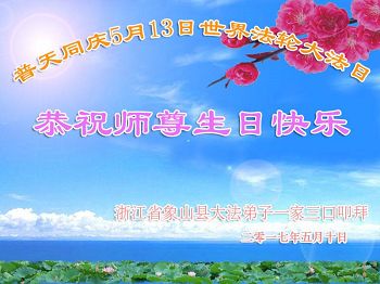 浙江省寧波市像山縣大法弟子一家三口恭祝師尊生日快樂!