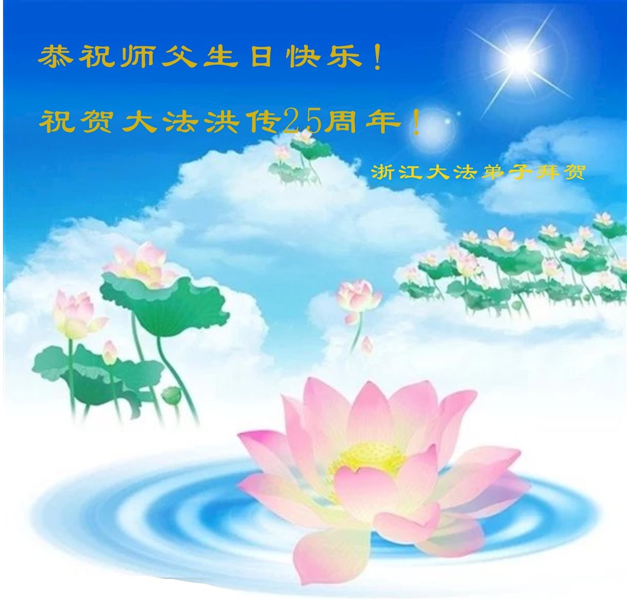 浙江大法弟子恭祝師父生日快樂!祝賀大法洪傳25週年!