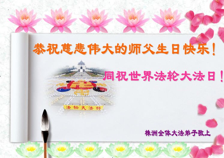 湖南株洲全體大法弟子恭祝慈悲偉大的師父生日快樂!