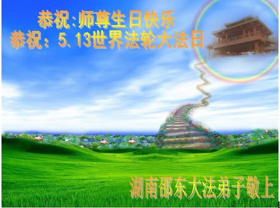 湖南省岳陽市一大法弟子恭賀5.13世界法輪大法日!跪拜慈悲偉大的師尊生日快樂!
