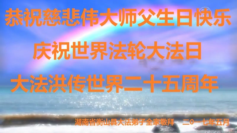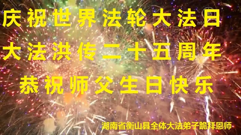 湖南省衡山縣全體大法弟子慶祝世界法輪大法日暨大法洪傳二十五週年!恭祝慈悲偉大師尊生日快樂!