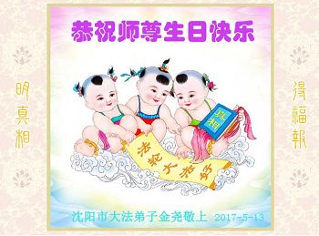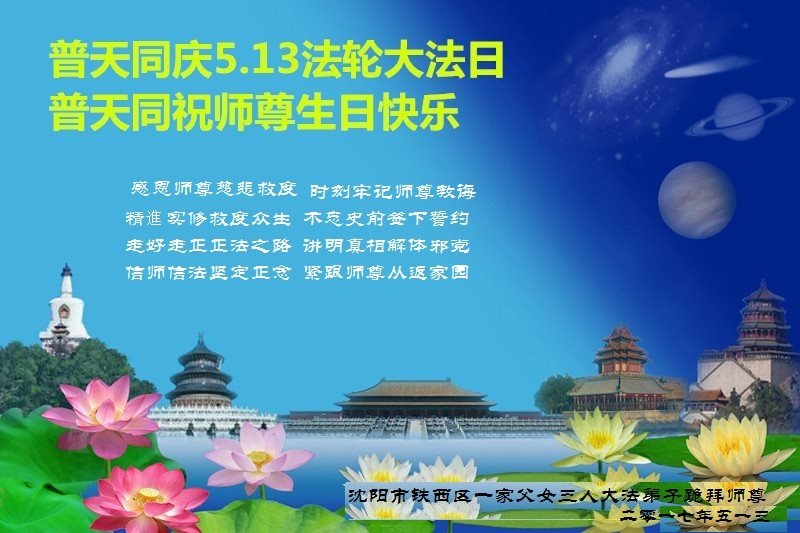 值此世界法輪大法日,瀋陽陵北地區大法弟子和沈北部份地區大法弟子及獄中部份大法弟子恭賀至尊至敬的師父生日快樂!