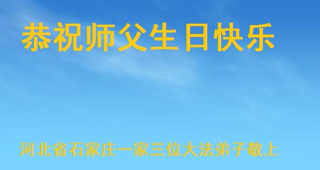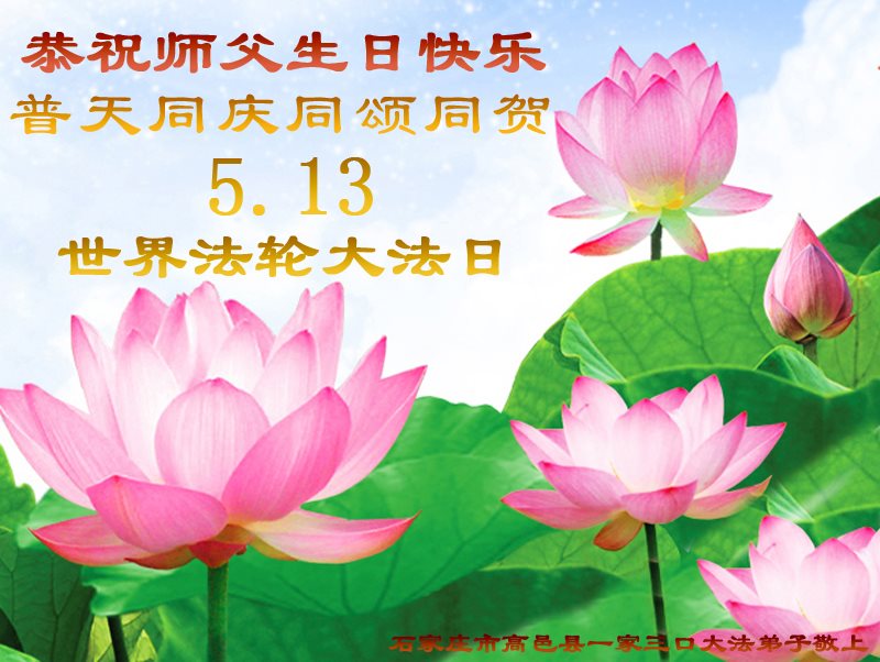河北省石家莊一家三位大法弟子恭祝師父生日快樂!恭賀法輪大法日!