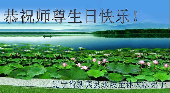 遼寧省撫順市新賓縣永陵全體大法弟子恭祝師尊生日快樂!