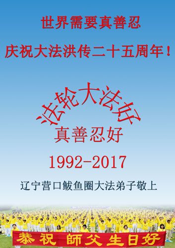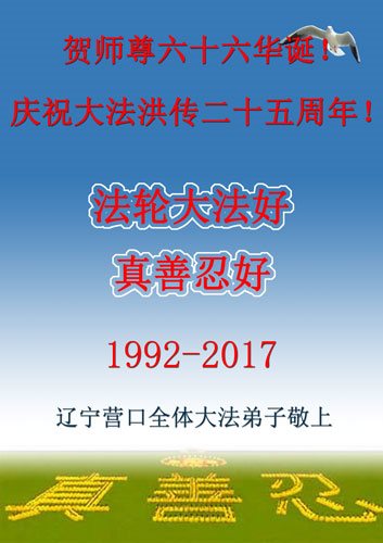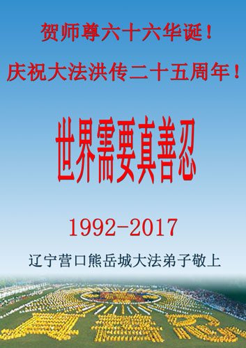 遼寧營口鱍魚圈熊岳城大法弟子賀大法洪傳二十五週年!賀師尊六十六華誕!