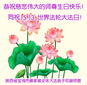 陝西省寶雞市大法弟子恭賀世界法輪大法日!恭祝師尊生日快樂!
