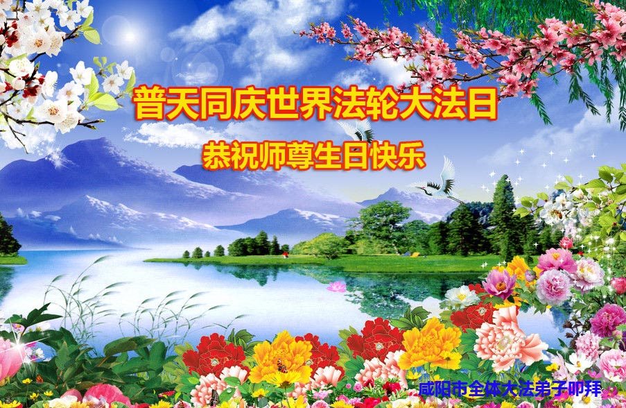 咸陽市全體大法弟子恭賀世界法輪大法日,恭祝師尊生日快樂!感恩大法的美好,感恩師尊的慈悲救度!