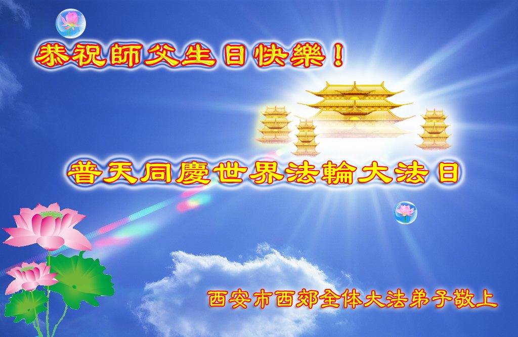 陝西省西安西郊大法弟子恭祝師父生日快樂!