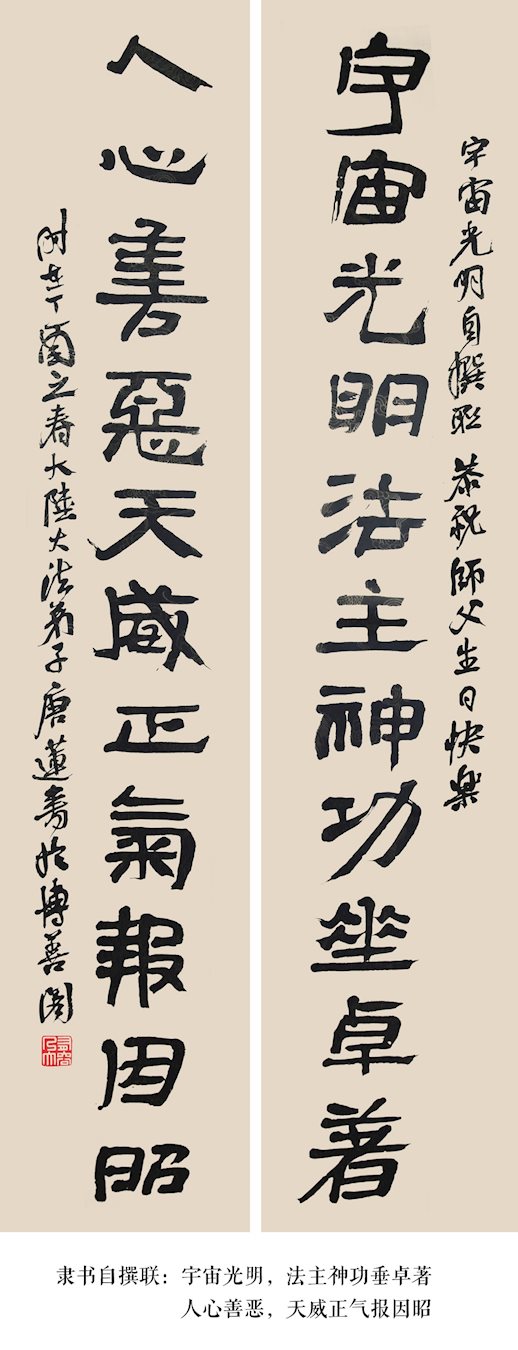 書法作品:宇宙光明法主神功垂卓著 人心善惡天威正氣報因昭