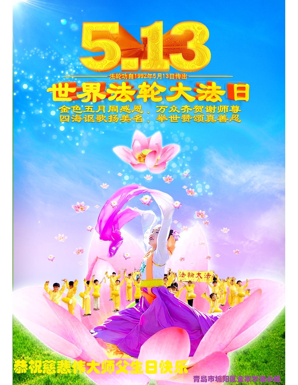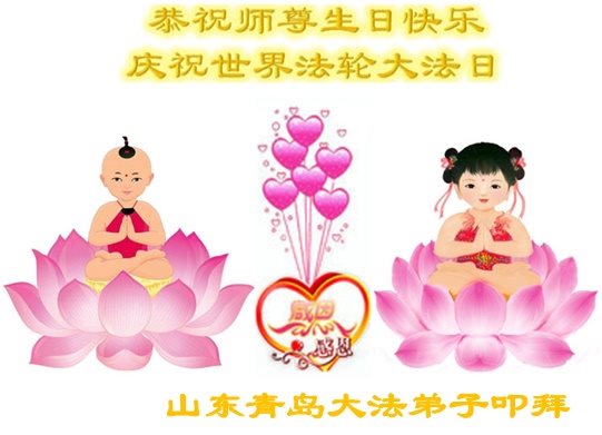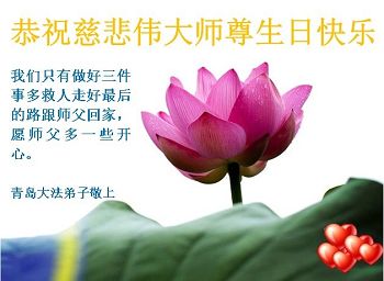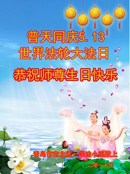 青島一學法小組大法弟子恭祝師父生日快樂!世界恭賀法輪大法日!