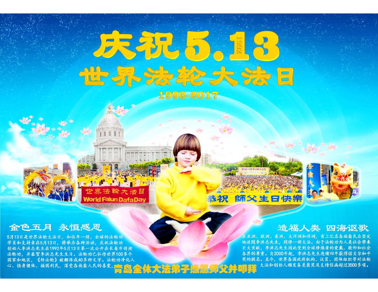 青島大法弟子恭賀世界法輪大法日暨師尊華誕(20條)