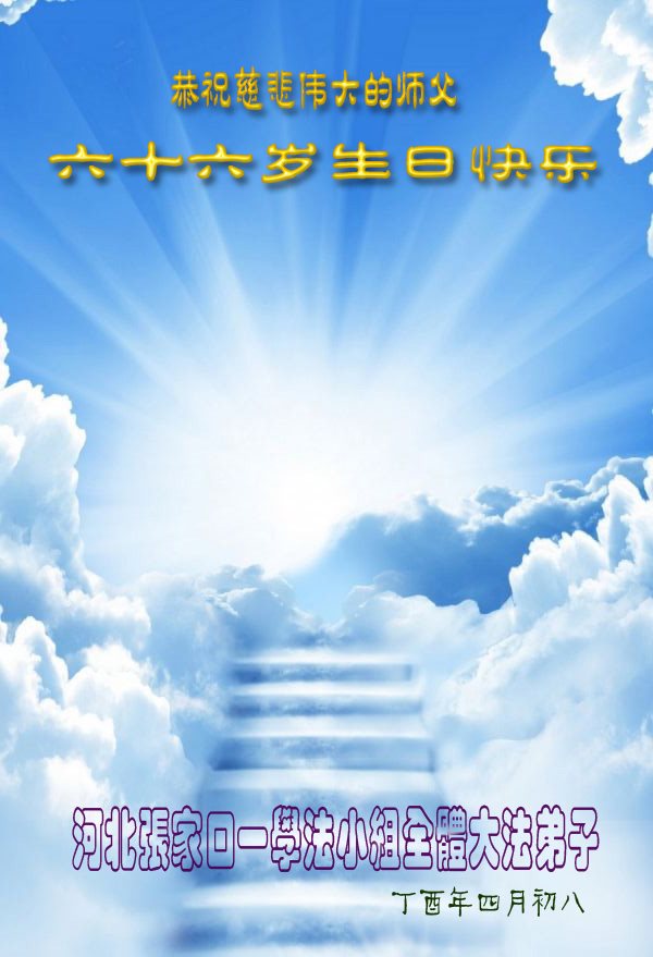 河北省張家口市下花園區一大法弟子祝師父生日快樂!師父辛苦了!謝謝師父救度!