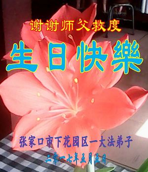 河北省張家口下花園大法弟子謝謝師父慈悲救度!祝師父生日快樂!
