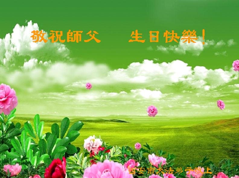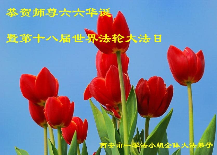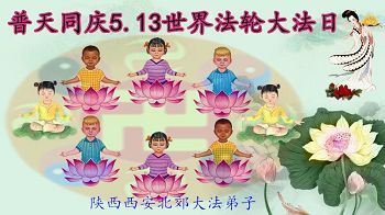 西安市城北一學法小組大法弟子慶祝 大法日祝師父生日快樂!