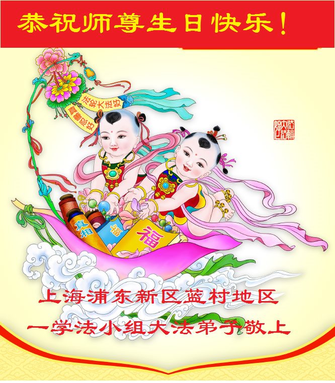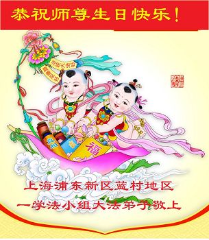 上海浦東新區藍村地區一學法小組大法弟子恭賀法輪大法日!恭祝師尊生日快樂!