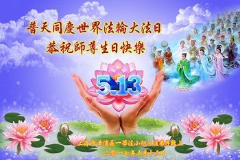 上海市黃浦區一學法小組大法弟子恭祝師尊華誕、傳法二十五週年暨5.13世界法輪大法日!
