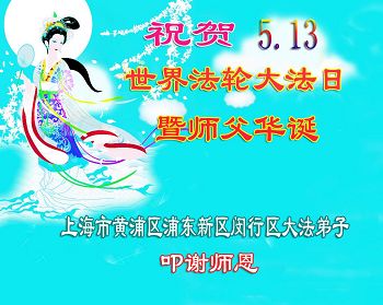 上海市浦東新區一大法弟子恭祝慈悲偉大的師尊華誕!恭賀世界法輪大法日!