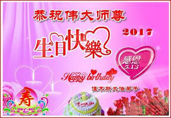 值此師尊華誕之際,恭祝偉大的師尊生日快樂!在最後師尊延續的有限時間裏,做好三件事,多救人,讓師尊多一些寬慰,少一些操勞,唯願師尊笑。