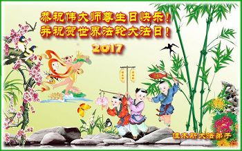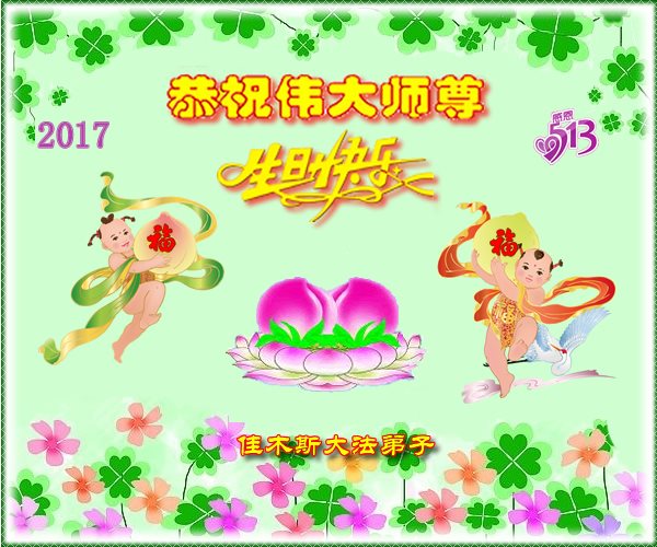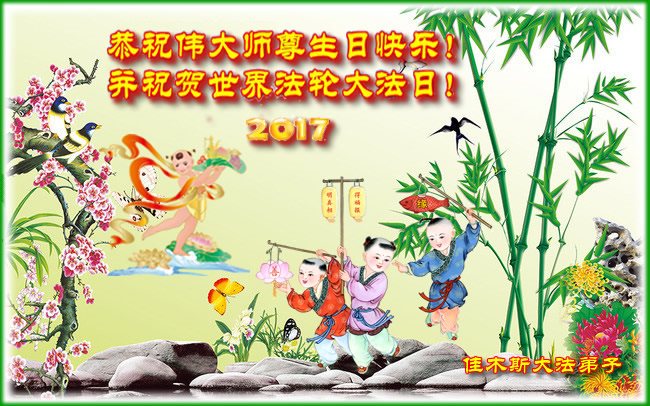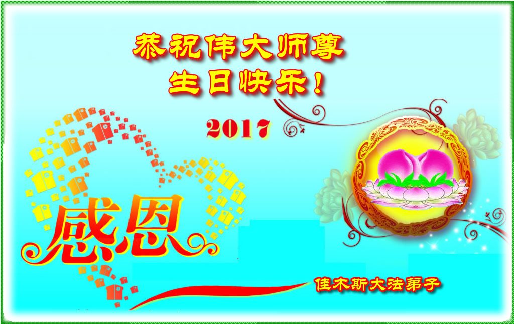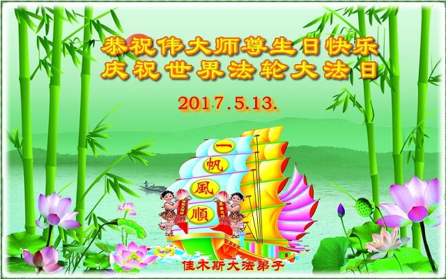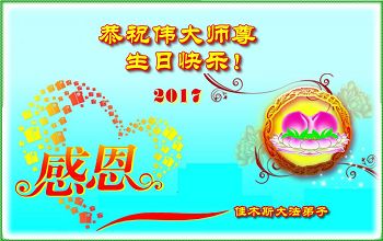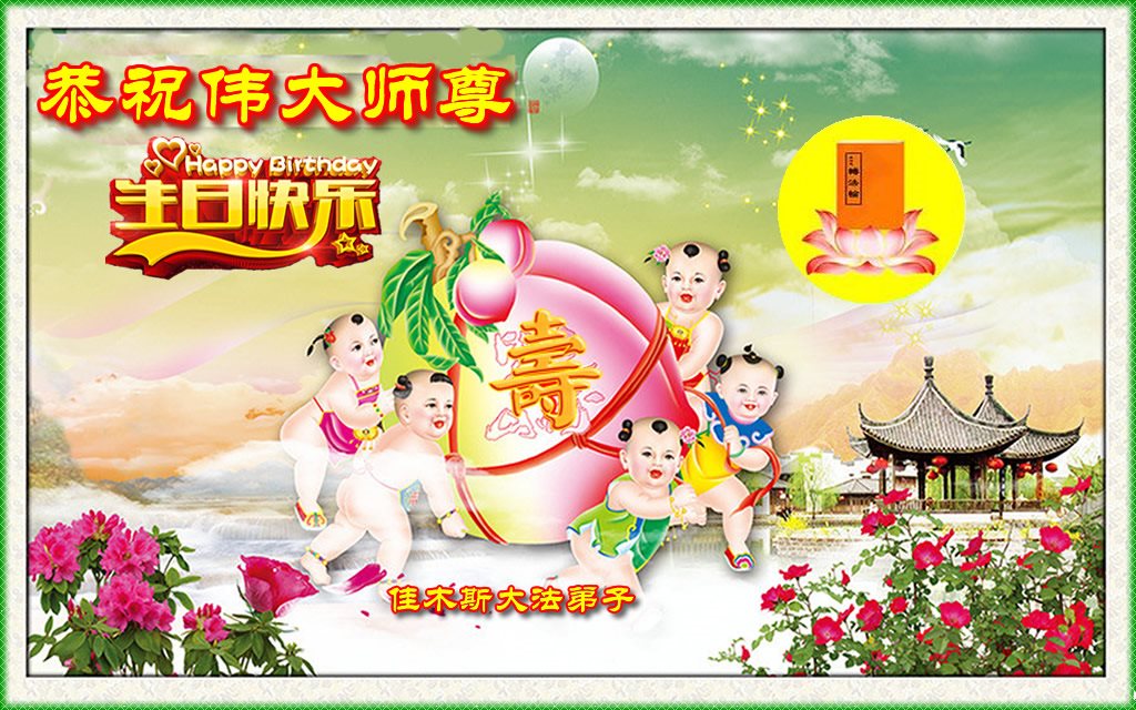 恭祝法輪大法洪傳二十五週年!普天同慶,同祝,同賀,世界法輪大法日。在這喜慶的節日,恭祝師尊節日快樂!師尊您辛苦了。