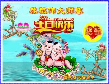 在法輪大法洪傳世界二十五週年紀念日,也是師尊六十六華誕,普天同慶。在此我們小組全體大法弟子及家屬恭祝師父生日快樂!向最慈悲偉大的師父跪拜!