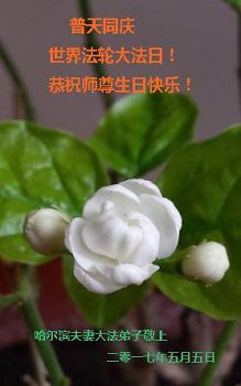 黑龍江省哈爾濱市兩大法弟子恭賀世界法輪大法日暨師尊華誕!