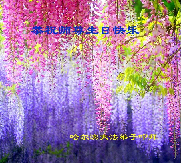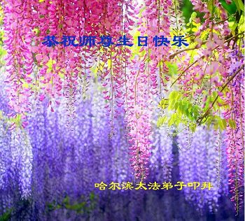 黑龍江省哈爾濱一中年大法弟子恭祝師父生日快樂!