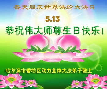 黑龍江省哈爾濱市香坊區大法弟子恭祝慈悲偉大的師尊生日快樂!普天同慶5.13世界法輪大法日!