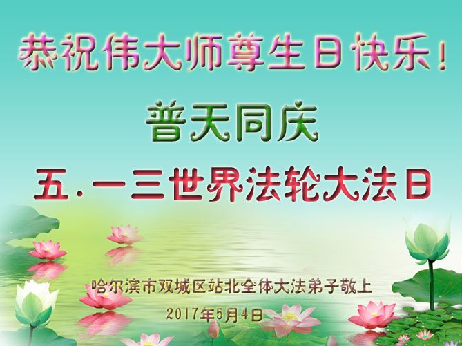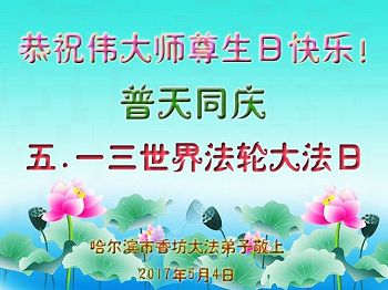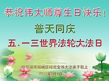 黑龍江省哈爾濱市大法弟子恭賀世界法輪大法日暨師尊華誕!