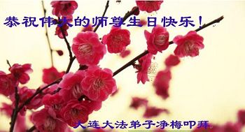 慈悲偉大的師尊!弟子們用盡千言萬語也無法表達師尊對弟子的慈悲苦度之恩!普蘭店大法弟子在過去的一年中,我們都走在師尊安排的正法修煉路上。在個人修煉上我們都在按照師尊大法中的要求提高自己的心性,我們有時在修煉中也有不足,但是我們會對照大法向內找,在大法中歸正自己。在講真相救人中,我們有堅持面對面講真相的,有的在電話對講小組積極勸三退講真相的,也有堅持發真相資料和粘貼不乾膠的。我們會盡自己努力兌現自己的史前神聖的誓約!師父啊,無論山陡路險,都無法阻擋弟子們歸真的正念,無論水深路遠,都無法妨礙弟子們的堅定!在這普天同慶的日子裏,我們普蘭店市所有的大法弟子叩拜師尊!謝謝師父!