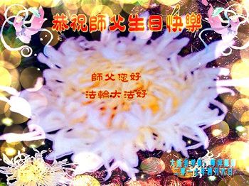 師尊您好!在這普天同慶的日子裏,我們從心底裏發出:恭祝慈悲偉大的師父生日快樂!並請師父放心,我們會更加精進,做好師父要求的三件事。