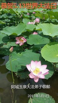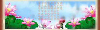 獻給偉大的師尊:是您挽救了蒼宇在壞滅之間,帶領我們走過了激浪險灘。您用洪大的慈悲,使十方穹宇換上了新顏。教我們用正念將邪惡化為烏有,用慈悲救眾生否定舊勢力的狂言。春夏秋冬我們牢記弟子的責任,日復一日我們行走在救度中。一聲聲謝謝中,我們感恩師尊的慈悲法的偉大,愚迷的白眼中我們深感責任的艱辛與重大。大法洗淨了我們骯髒的靈魂,三件事魔掉了我們人的執著,偉大的法,造就了偉大的生命。感恩師尊您用法船度我們到聖潔中永留。又是一年大法日,迎來師尊華誕日。感恩的語言難表述,法徒全家恭敬齊叩首,恭祝師尊生日好,盼望師尊早日歸。