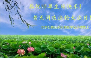 北京石景山永樂地區學法小組恭祝師尊生日快樂!普天同慶法輪大法日!