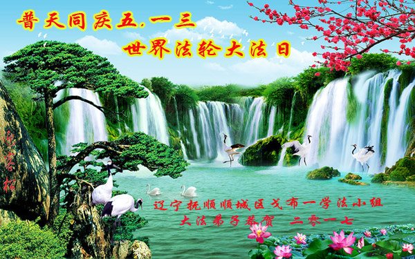 遼寧撫順順城區戈布一學法小組大法弟子普天同慶世界法輪大法日!