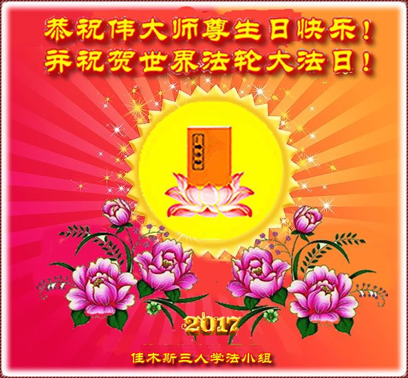 黑龍江省佳木斯三人學法小組大法弟子恭祝偉大的師尊生日快樂!慶祝世界法輪大法日!