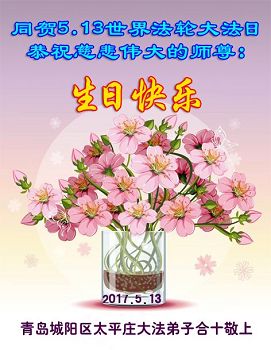 山東省青島市城陽區太平莊大法弟子同賀世界法輪大法日!恭祝慈悲偉大的師尊生日快樂!