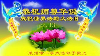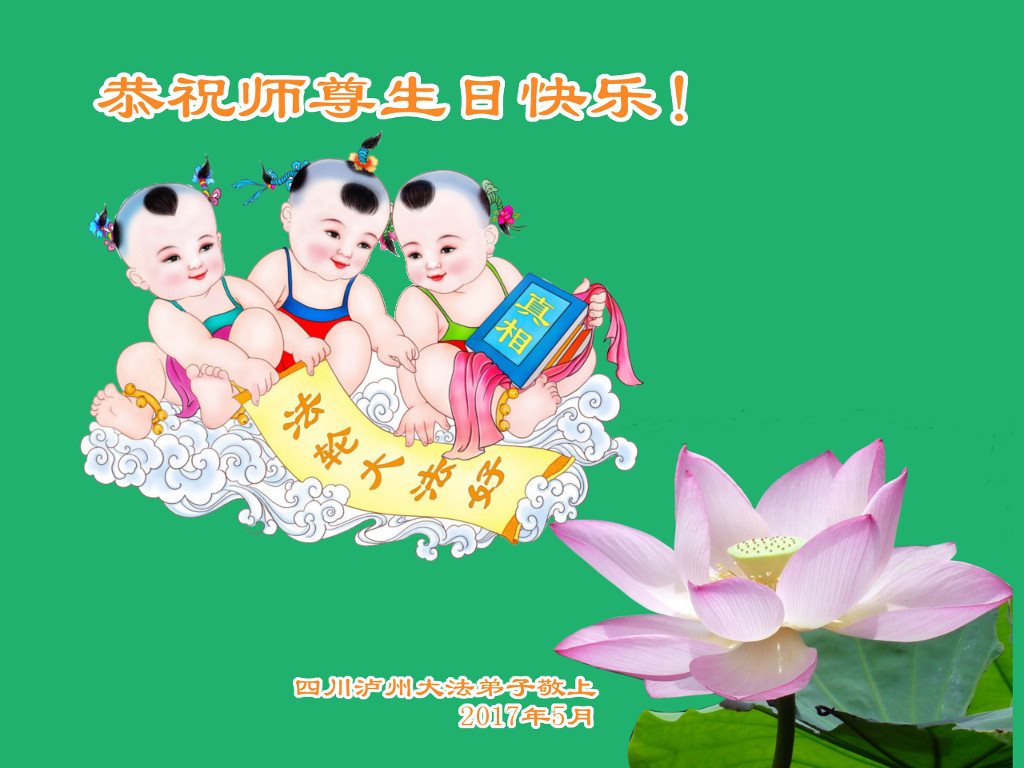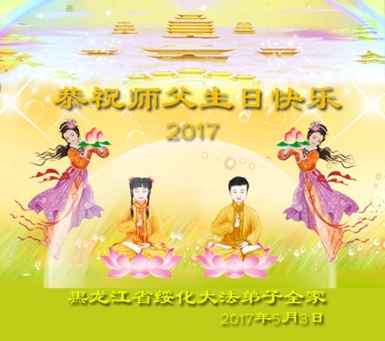 生活在河北省的四川籍大法弟子叩謝師恩,師尊慈悲救度弟子,還一直看護著弟子的家人,弟子無法用人類的語言表達對您的感恩!只有精進、精進、勇猛精進!弟子給師尊磕頭!恭祝慈悲偉大的師尊生日快樂!同賀世界法輪大法日!