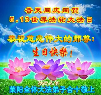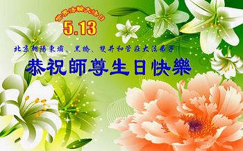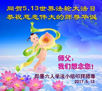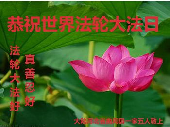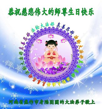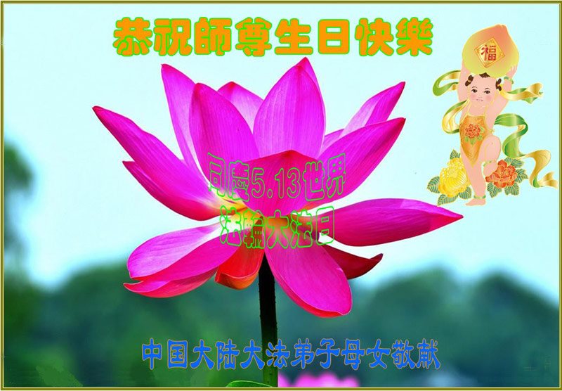 值此世界法輪大法日到來之際,恭祝師尊生日快樂!並向師尊叩拜!大法弟子非常想念師尊,衷心感謝慈悲偉大的師尊!我們會按師尊的教誨,走好最後的路!弟子合十!