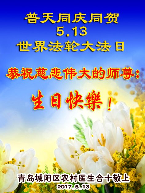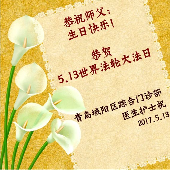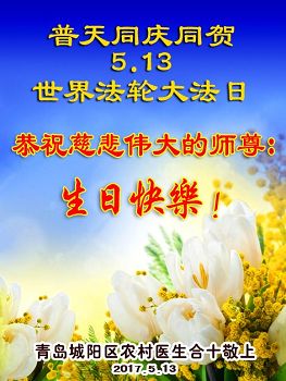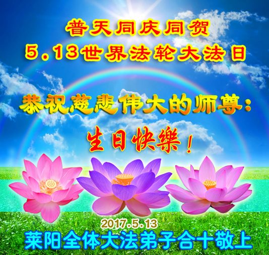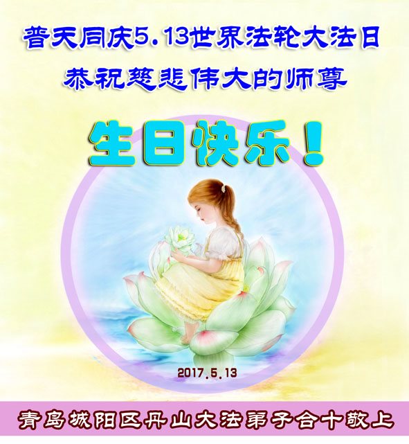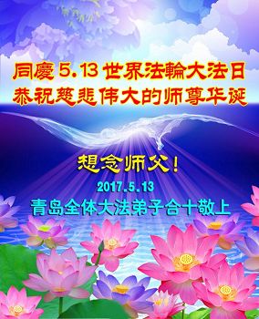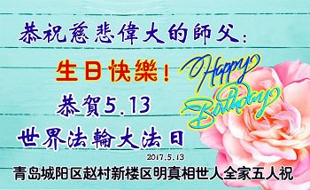 值此世界法輪大法日到來之際,恭祝師尊生日快樂!衷心感謝慈悲偉大的師尊!並向師尊叩拜!弟子非常想念師尊,並認真做好三件事,走好最後的路!弟子合十!
