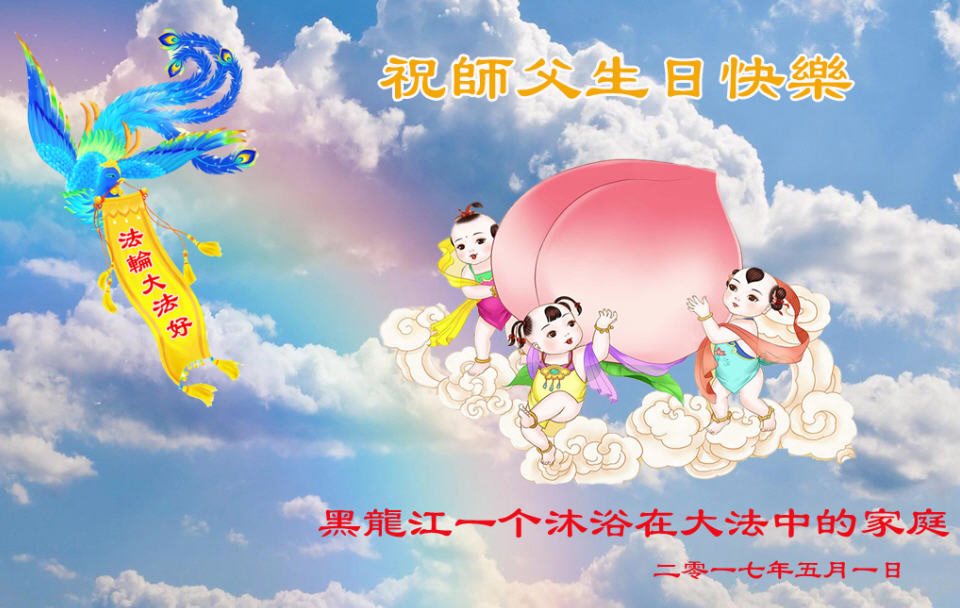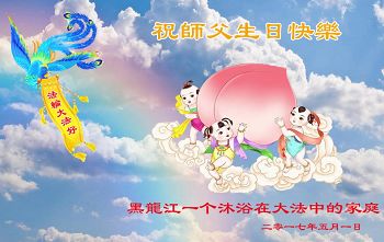 黑龍江一個沐浴在大法中的家庭恭祝師父生日快樂!
