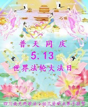 四川南充倆學法小組三資料點弟子恭賀法輪大法日!