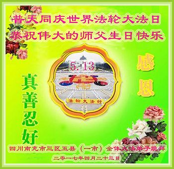 四川南充市三區五縣一市全體大法弟子恭祝偉大的師父生日快樂!普天同慶世界法輪大法日!