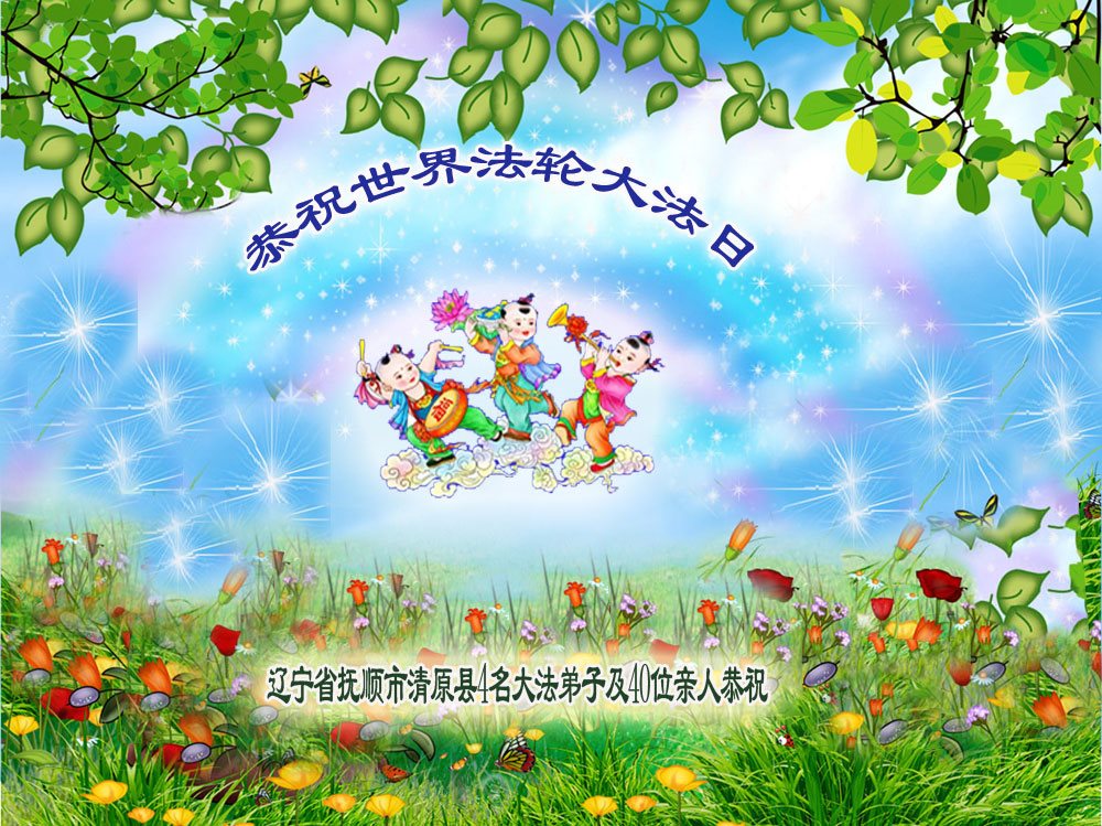 遼寧省撫順市清原縣4名大法弟子及40位親人恭祝世界法輪大法日!