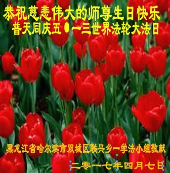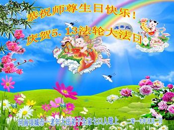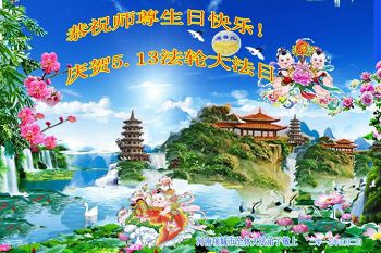 在五一三法輪大法日來臨之際,迎來師父生日。在這裏弟子向師父問好,祝偉大的師父生日快樂!謝謝師父慈悲苦度,一定要跟師父回家,做好三件事。