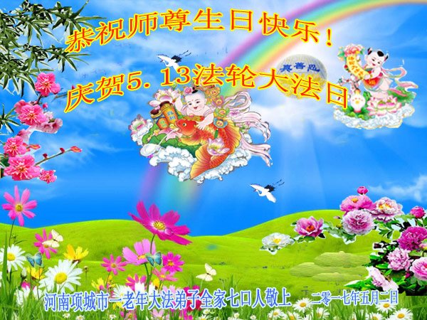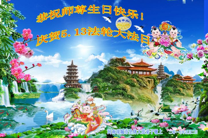 在這普天同慶同祝5.13世界法輪大法日即將來臨之際,同時又是師父華誕之日,弟子懷著感恩的心情誠摯的一聲師尊您好!您辛苦了!弟子只想與師尊一起歡度節日!分享大法的美好!多救人、快救人,跟師父回家。