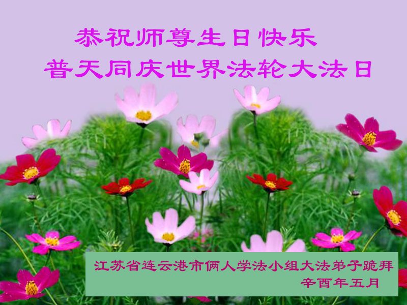 「五一三」,在這普天同慶、殊勝、感恩的日子裏,弟子向慈悲偉大的師父問好,恭祝師父生日快樂!恭賀世界法輪大法日!恭賀法輪大法洪傳二十五週年!