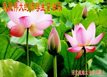 我代表我家四個大法弟子:祝師父生日快樂!我們在最後的時間裏要更加精進,做好三件事,修好自己,跟師父回家。